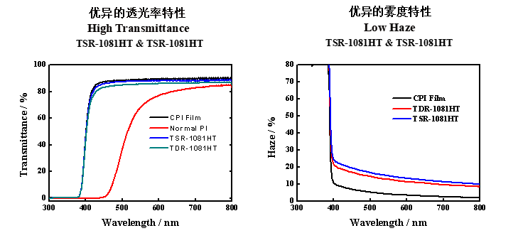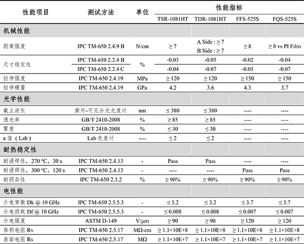 福斯特也開發(fā)了無色透明單/雙面板、復(fù)合膜和補強板等特殊基材。采用自主開發(fā)的無色透明聚酰亞胺,經(jīng)過特殊工藝路線生產(chǎn)得到。無色透明單/雙面板產(chǎn)品具有高剝離強度,高透光率和低霧度,良好的耐浸焊性,優(yōu)異的耐候性,可用于戶外顯示、戶外OLED屏等。復(fù)合膜和補強板具有高剝離強度,高平整性,高耐熱性,可用于制造高性能單面板和多層板。